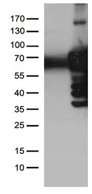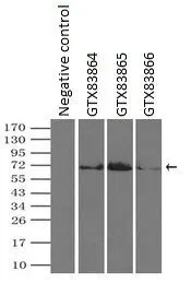 IP analysis of DDDDK tagged PLK1 overexpressed HEK293T lysate using GTX83865 PLK1 antibody [1D4].After extensive wash to remove any non-specific binding, the immuno-precipitated products were analyzed with rabbit anti-DDDDK polyclonal antibody.